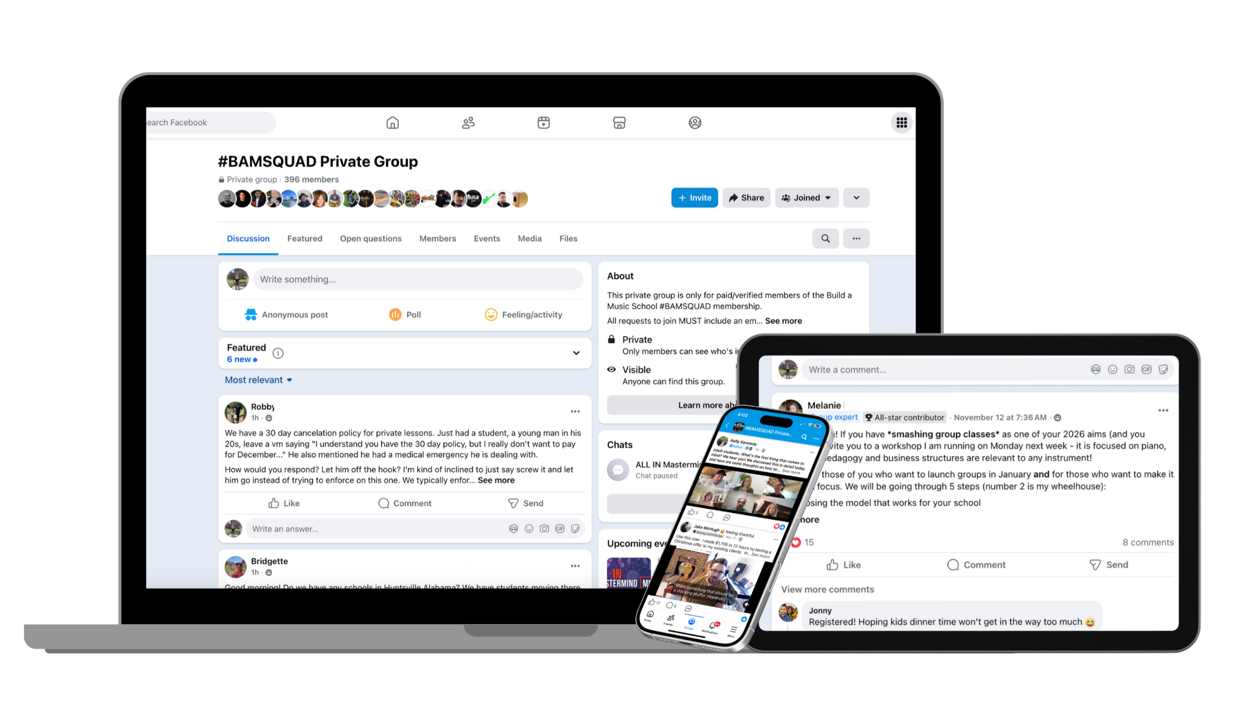 Access every keynote, workshop, and Q&A form past Build a Music School Conferences in your BAM library.